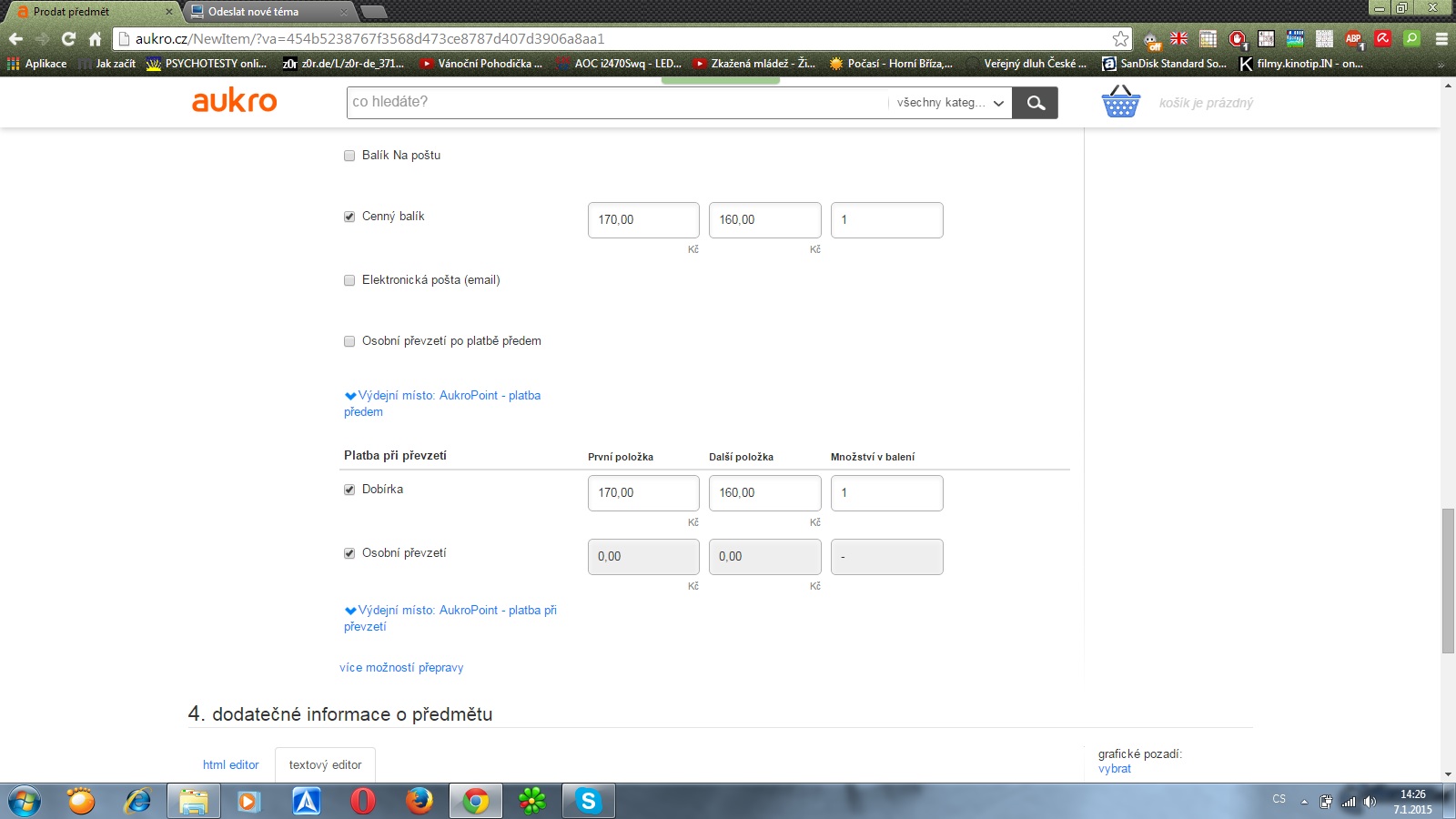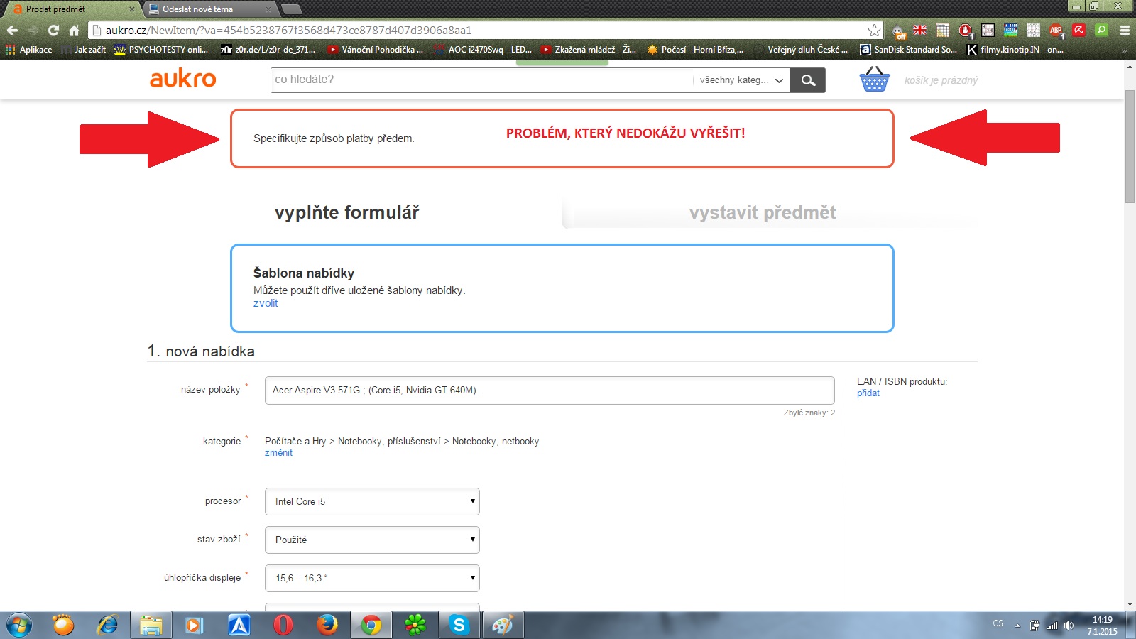 už se tu snažím přes hodinu probojovat se přes "vystavení předmětu" na Aukru.cz... Dávám sem screeny, může mi někdo říct, co dělám špatně a proč to kruci-fix nefunguje?