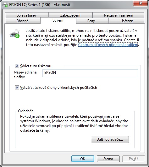 Jak konkrétně má být nainstalováno sdílení souborů a tiskáren? Nastavil jsem sdílení v "spravovat pokročilé nastavení sdílení" a na tiskárně jsem nastavil ve vlastnostech sdílení. Ovladače jsou v obou počítačích. Stále se mi však nedaří tiskárnu nasdílet. V obou počítačích jsou 2 účty shodné (jméno, heslo). Na obou počítačích vidím druhý počítač v síti, ale otevřít tu složku nemohu.