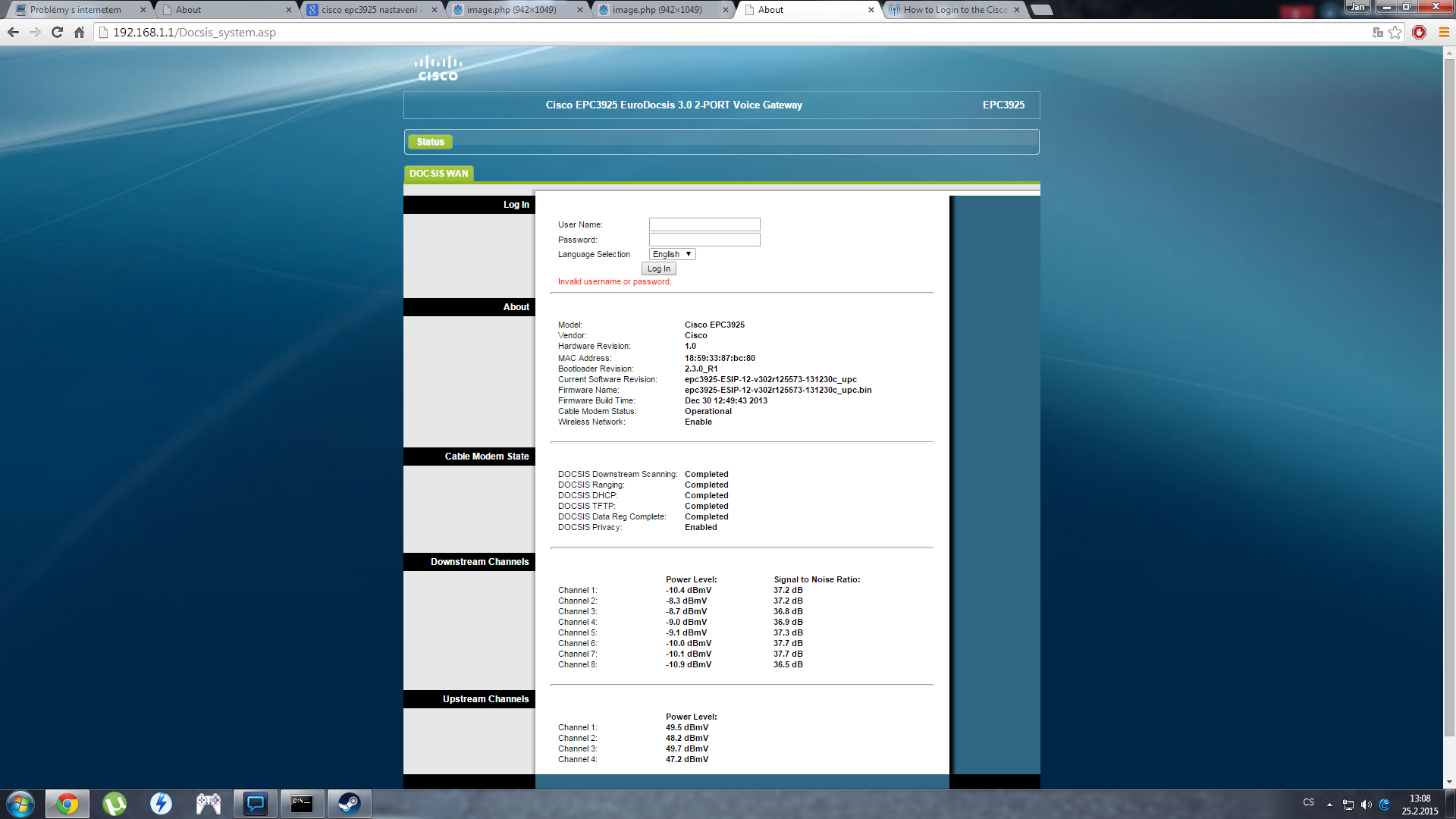 Vím, že to zřejmě není dostačující. Od toho, co tu byl ten technik od UPC, jsem ten modem nijak nenastavoval. A zkoušel jsem 30 minut hledat defaultní hesla k mému modemu, bohužel bez úspěchu.