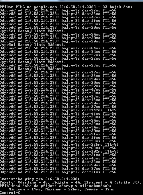 Ahoj, potýkám se s problémem. Když se pinguju např. na google.com, tak mi to začne občas vypisovat "Vypršel časový limit žádosti".