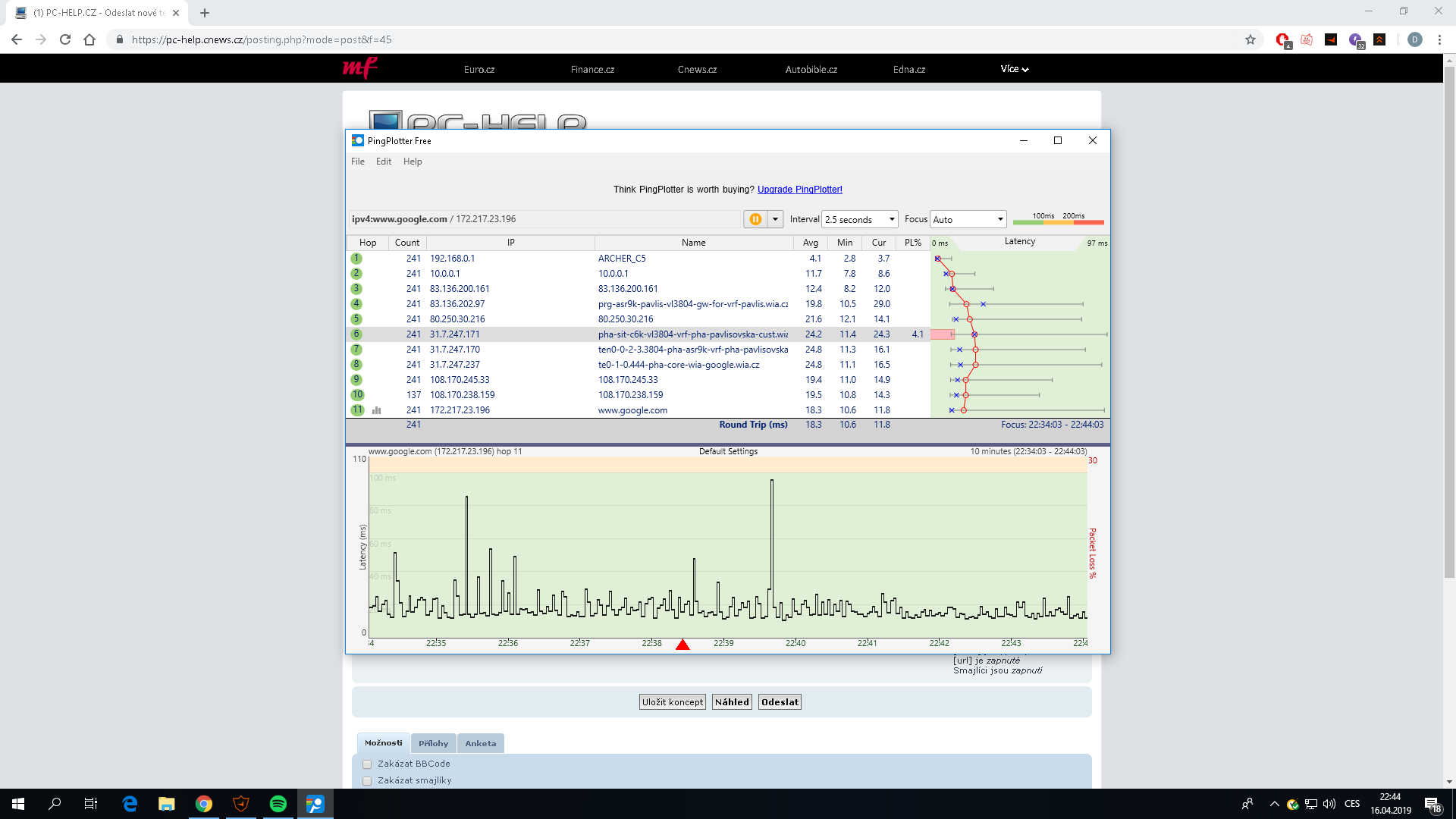 Mám déle trvajcí problém s internetem. Přesněji packetloss.