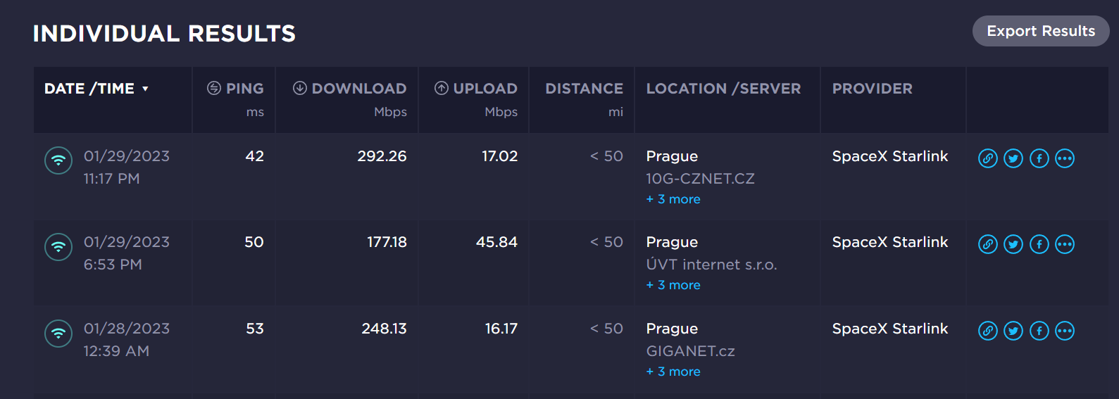 Ty rychlosti vypadají moc hezky, ale taky už je to půl roku stará recenze a Gen1 kulatý satelit. Kdo ví, jak to je teď. Nejvíc vypovídající mi přišly statistiky z měření třeba tady: