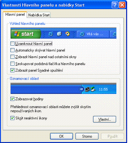 Schovaná lišta v XP