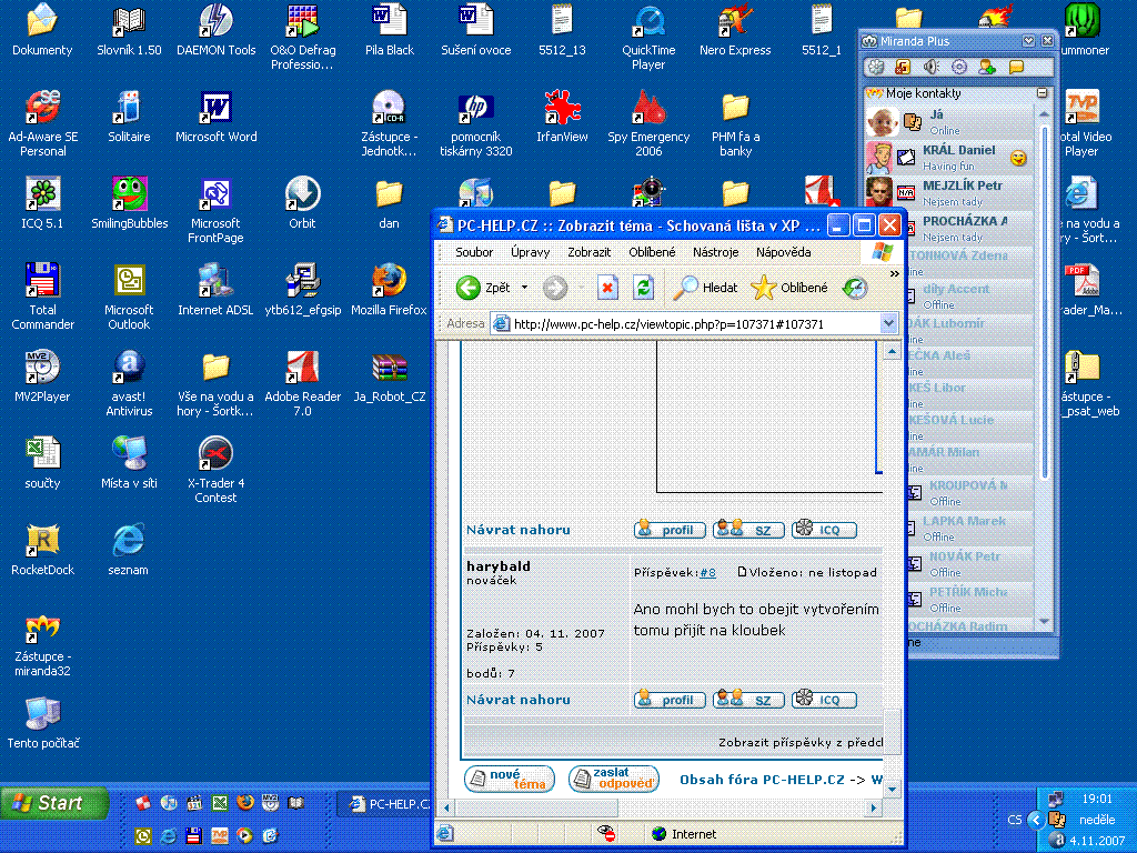 Jen ještě obr pro názornost lišta se mi neschovává že by zajížděla ale překrejvá jako v w2000 ale mám XP... a když dám wokno na celou obrazovku tak není vidět vůbec....spy jsem všechen odstranil tam problém nebude