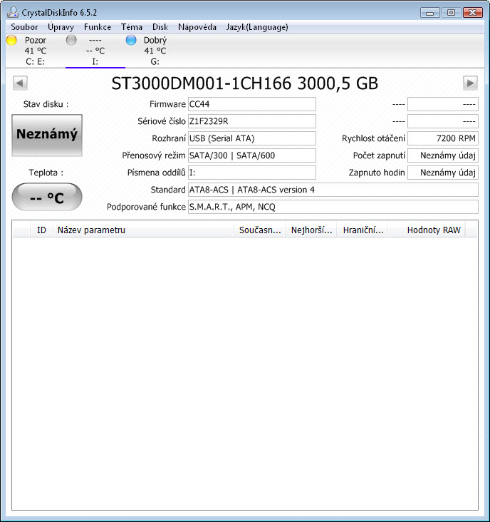 Udelel screenshot z Crystal Disk Info a aplikace od Seagate na test disku, to zmatene PDF se mi nechce lustit.