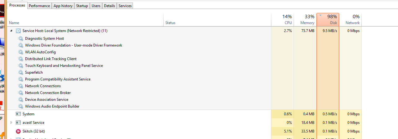 Ahoj, toto se mě stalo na novém firemním PC, asi po týdnu užívání začal být disk bezdůvodně vytížen na 90-100%. Projel jsem tedy disk "HD Tune" a ten ukázal spoustu vadných sektorů. Šlo o nové PC, takže šel na reklamaci, kde vyměnili disk a vše je od té doby v pořádku. Toto byl můj připad.