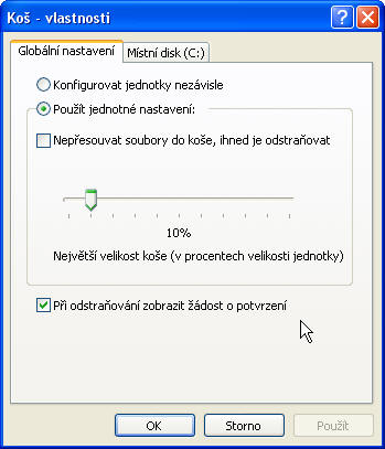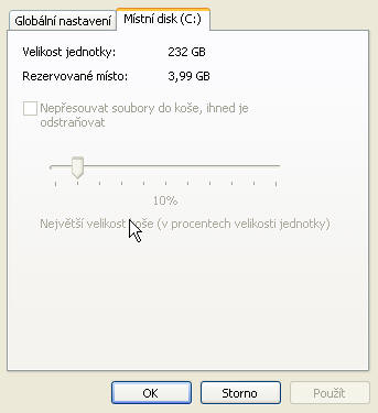 , ale marně hledám, kde se nastavuje, zda mazané soubory mají být rovnou odstraněny, nebo přesunuty do koše. Léta jsem používal variantu "koš" a najednou se mě to při mazání neptá "Oravdu chcete položku přesunout do koše?", ale chce vědět, zda "Opravdu chci soubor odstranit?" a když řeknu, že ano, opravdu ho smaže a je po ptákách. Tuším, že už se to tu bralo, ale zřejmě jsem zrovna chyběl a Hledání nezabralo. Mám win 2000 + SP 4.