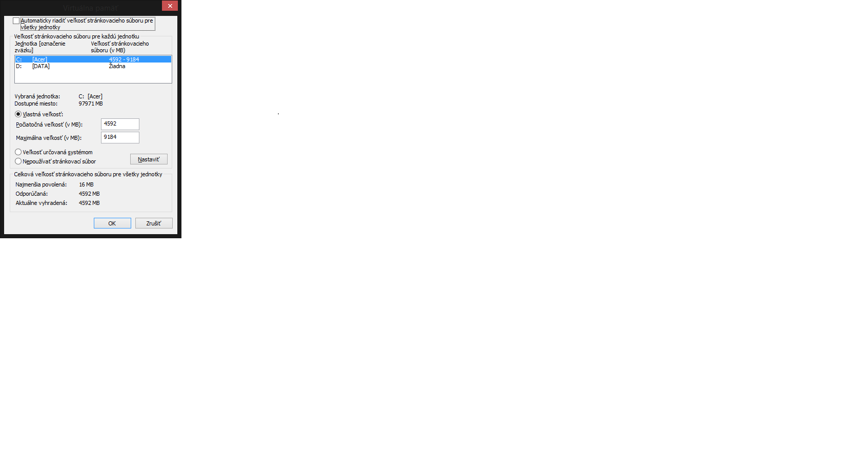 jenom si tim rasíš hdd/ssd, takže určitě vypnoutJuplosik píše:Mám 8GB Ram a často hrám náročné hry tak asi tu virtualnu pamäť nemám vypnuť že ?