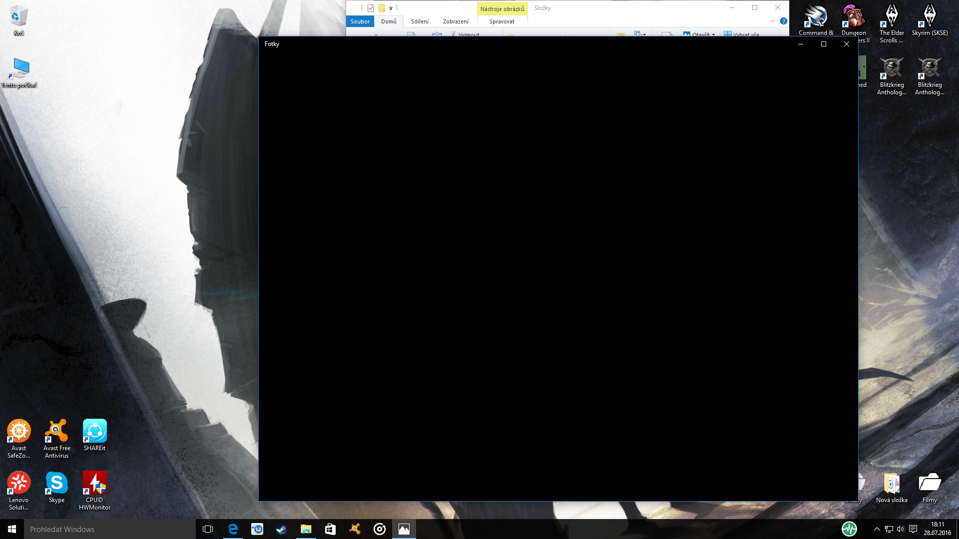 Dobrý den, dneska jsem si udělal screen obrazovky, chtěl jsem se na něj podívat, otevřelo se okínko Fotky, chvilku černá obrazovka (příloha), a pak spadne. Myslel jsem že to je screenem, tak jsem koukl na fotku už v počítači, to samé. Zkusil jsem restartovat, a nic. Nevíte co s tím?