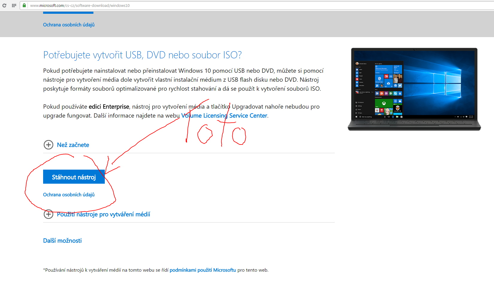 Je tam link na stazeni nastroje na vytvoreni instalacniho flashdisku.