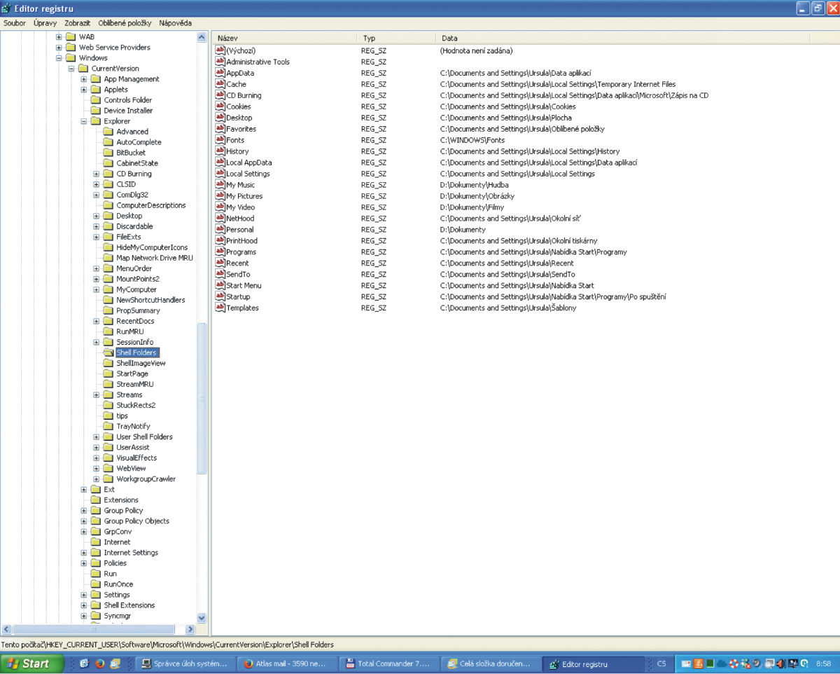 Ale pozor, v registrech to je na více místech, a ještě je nutné rozlišovat pro kterého uživatele to měníš, a také rozlišovat uživatelské a veřejné umístění. To znamená, že v registrech musíš vědět co děláš !!