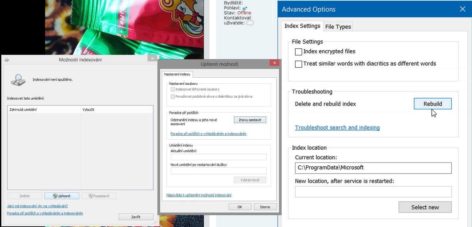 Když o tom něco víš, proč nemám inxování ? Čím jsem to dokázal? Nemám ani umístění ani File Types. (jak dokládám na screenu) a přesto mi to skvěle funguje.