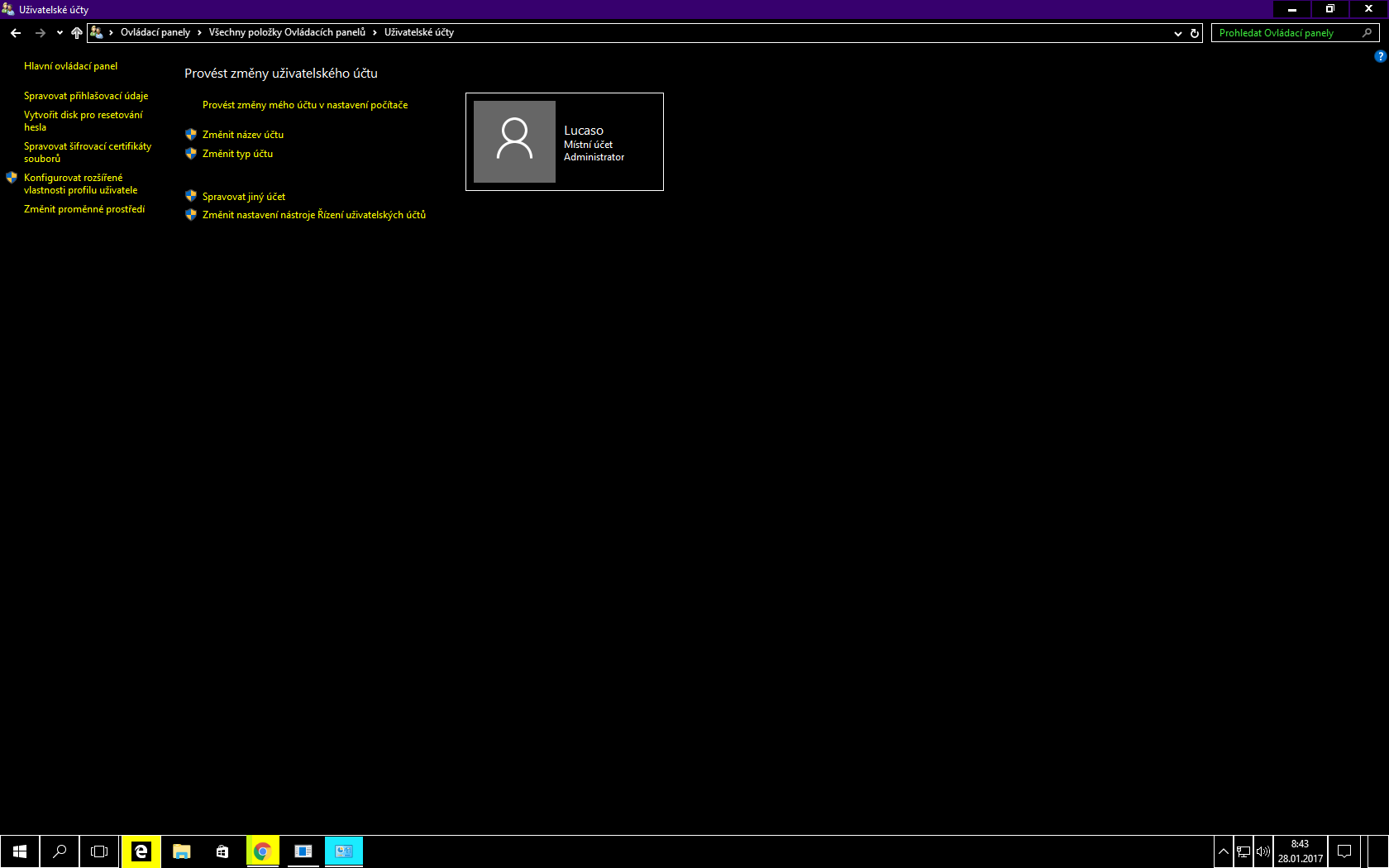 Ahoj. To vypadá, že se ti jen přepnul motiv na "Vysoký kontrast - černá". Klikni pravým tlač. myši na ploše, vyber Přizpůsobit, vlevo pak Motivy, potom vpravo Nastavení motivu a tam už si pak vyber a dolaď k obrazu svému