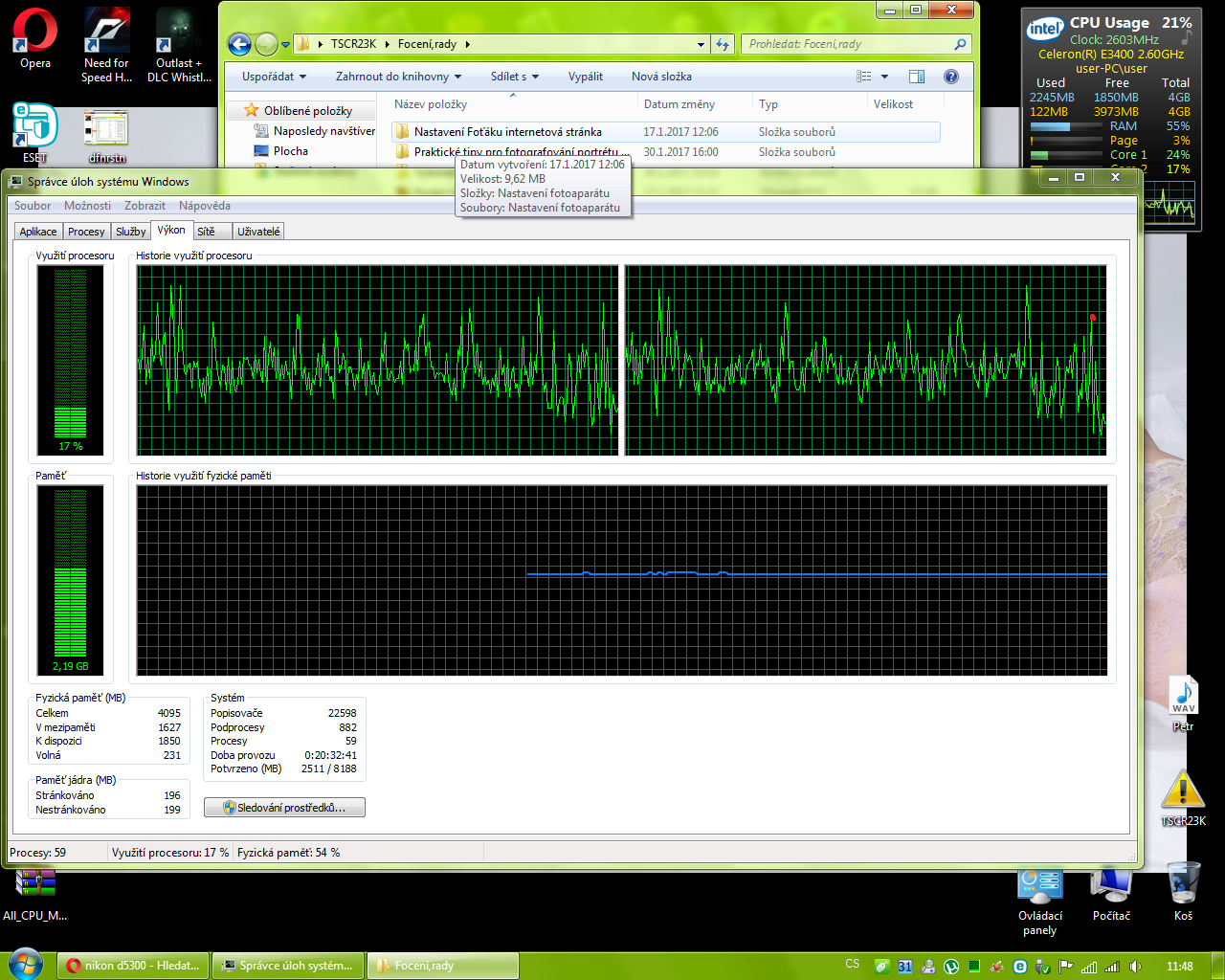 Dávám sem procesy a plus historii využití procesoru.Tam kde je ta červená tečka se to zadrhlo.Nevím co to dělá,žádnej proces to nedělá.Už si nevim rady.Nejvíc se to trhá,když pracuji s Windowsem,jako otevírání oken nebo i přecházení obsahu na webu jakoby když se něco načítá jestli to je disk já fakt nevim nerozumim tomu.
