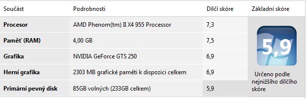 Re: Hodnocení výkonu vašeho PC
