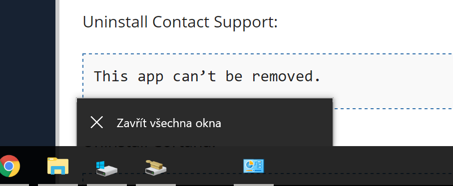 Zdravim. Mám tu problémek s windows 10. Měl jsem na hlavním panelu ikonku pošty. Když jsem na ní klikl pravym tlačítkem myši a dal odepnout, zůstal tam černý čtverec, s možnostma jako kdyby tam ta pošta furt byla. Tak mě napadlo, že bych mohl tu poštu odinstalovatl. Do powershellu jsem dal toto: Get-AppxPackage *windowscommunicationsapps* | Remove-AppxPackage