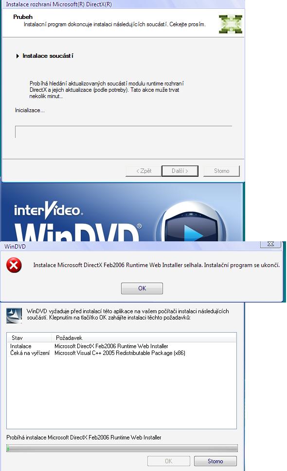 Při instalaci mého oblíbeného přehrávače Win DVD 8,který vyžaduje aktualizaci DirectX tak jsem zjistil,že nejde nainstalovat viz scren: