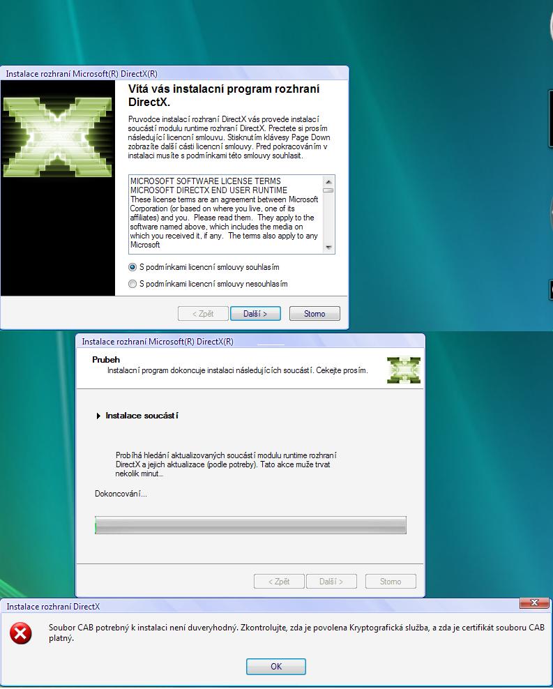 Tak jsem přímo ze stránek Microsoftu stáhl DirectX jak csy tak i eng a pořád to vypisuje tuto chybu: