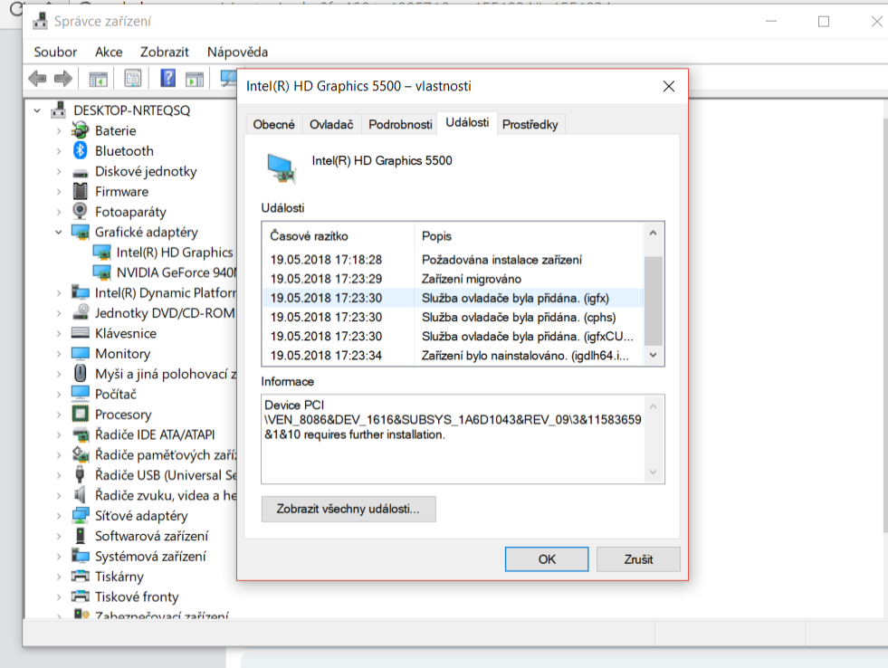 Udělala jsem print screeny toho, co jsem našla ohledně grafiky ve správci. Předem se omlouvám, moc tomu nerozumím. Každopádně aktualizace proběhla právě 19.5.