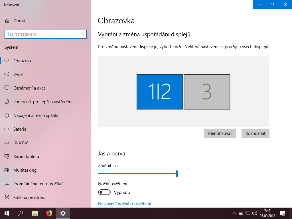 Když dám klasicky rozlišení, tak tam to vidí pouze jeden notebookový displej a tudíž tam není vůbec možnost volby (duplikovat).