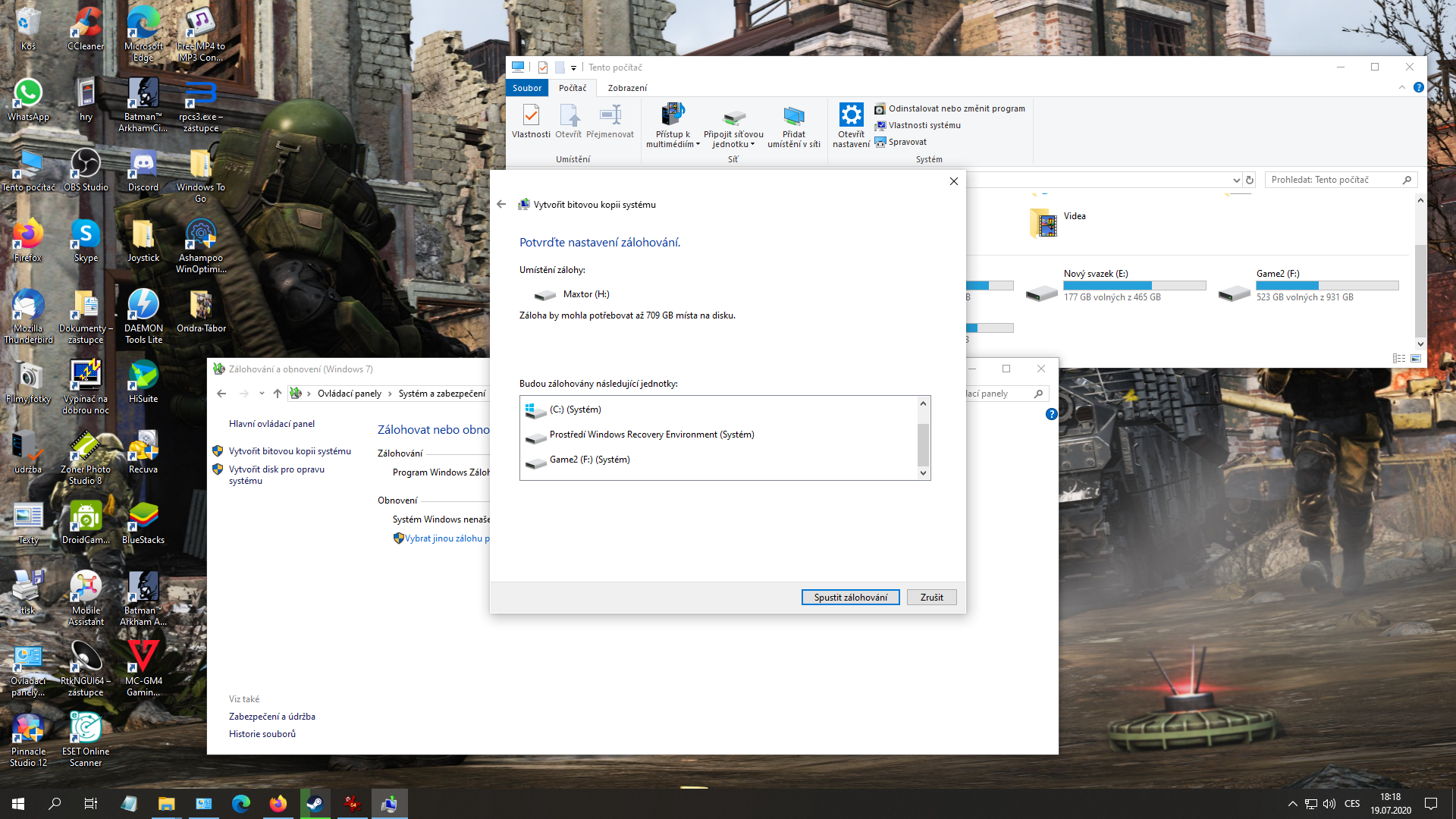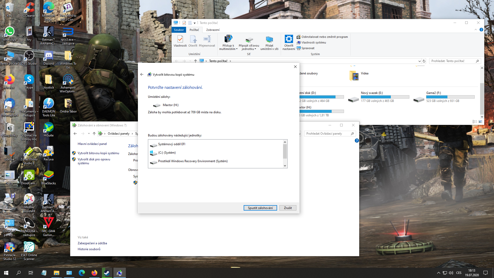 Nedávno jsem dával třetí HDD do PC. No dnes jsem chtěl vytvořit novou bitovou kopii systému/přímo z Ovládacích panelů/. Ovšem když se o to pokusím, tak mi systém zaškrtne ke kopírování i nový disk/F:/, kde žádný systém nemám. Viz. obrázky kdy sytémový disk mám C:. Proč mi tam naskakuje i to F:, kde mám čistě jen nějaké hry.