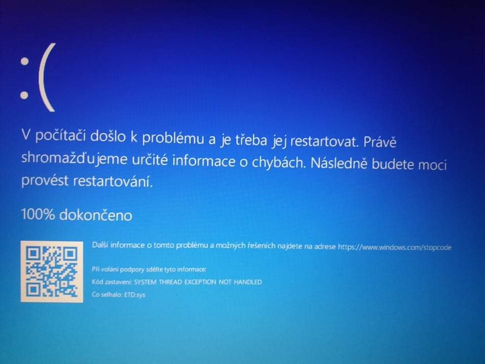 Chybu zpusobil ovladac touchpadu etd.sys, takze je jiste, ze tim to je.