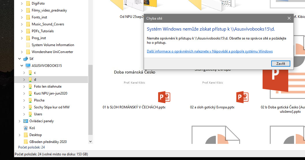 ...Před nedávnem jsem řešil nefunkční síťové propojení 2 domácích pc +wifi notebook přes vdsl router. Nějak se mi to povedlo zprovoznit, ale nyní to je opět nefunkční. Jednou to jde, jednou ne. Někdy se dostanu pouze na některá místa, prostě je to nevyzpytatelný. Hláška os je obecná – viz screen.Všechny složky na všech discích jsou nasdílené, mám admin práva. Snad hw chyba 6let starého routeru zyxel? Jde to nějak zjistit, nebo ověřit nějakým programem na kontrolu sítě? Nebo hned koupit nový?