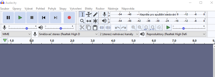 Zdravím všechny,po přeinastalaci OS a následné instalaci Audacity se mi ztratil směšovač zvuku,takže nemohu nahrát žádný zvuk.Jinak AC(audacity) funguje-přehrává zvuk,který tam myší přetáhnu,vše je zdánlivě OK,až na ten směšovač.Ve vrchní části okna AC chybí výběr nahrávacího zařízení a nahrávací kanály (viz fofo) tyto nabídky jsou prázdné.Reinstalaci AC jsem provedl ,smazal a nainstaloval nové ovladače zvuku,bohužel-bez úspěchu.