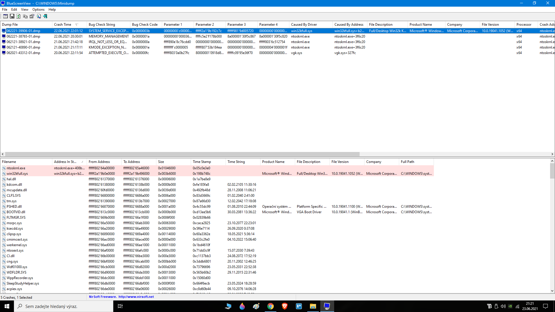 Tak není to sice přesně podle návodu, ale přikládám screen z programu BlueScreen View. Nějaké chyby tam jsou, tak prosím o kontrolu, pokud možno.