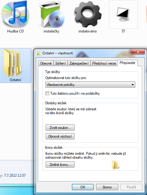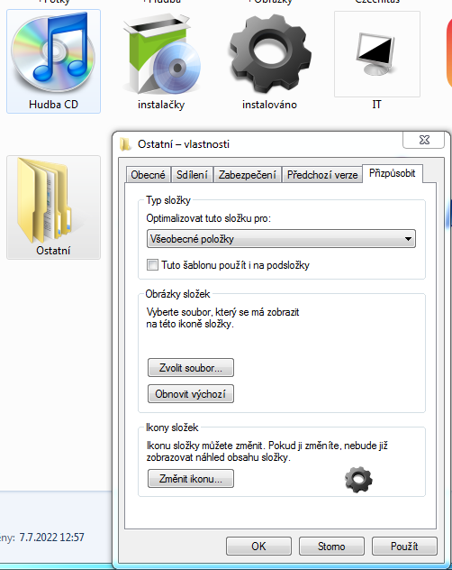 Když bych vybral některou ze systémových ikon, tak to změnit normálně jde, ale ať vezmu jakýkoliv vlastní obrázek tak ne (ve formátu ico nebo png) ani ty které se mi dřív použít podařilo (viz složky výše).