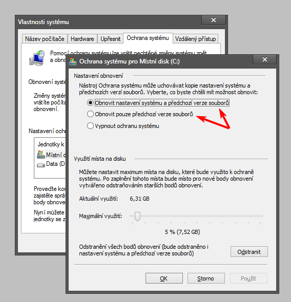 Re: Aktivace funkce předchozí verze souborů a složek na Windows 10?