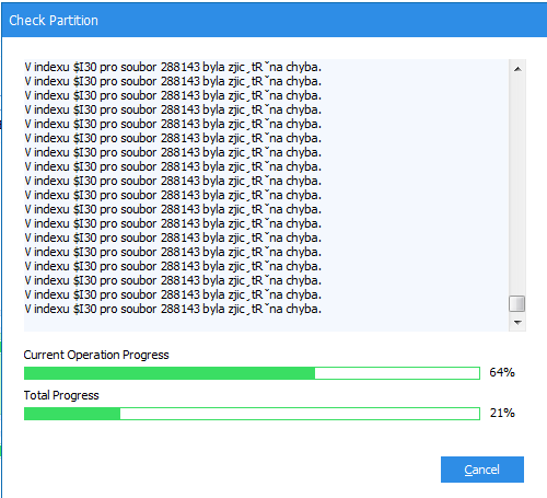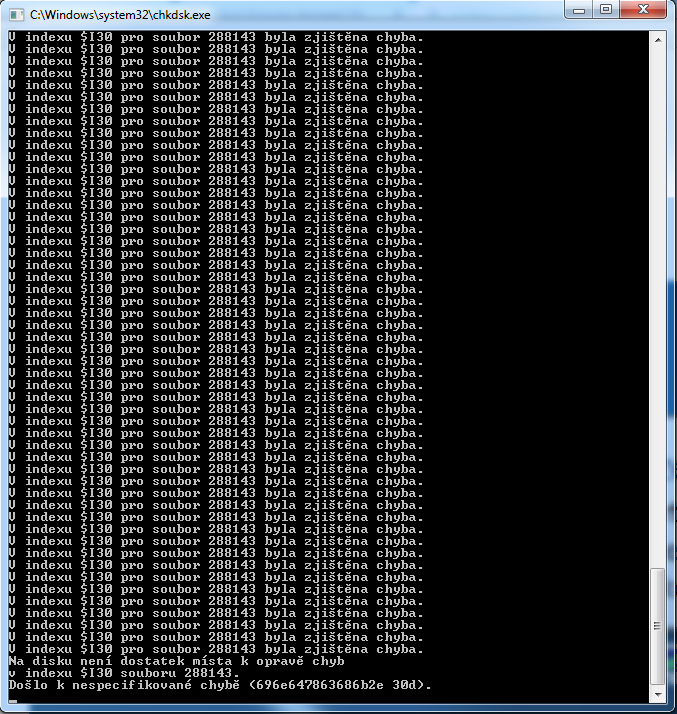 Když chkdsk sputím z příkazového řádku, tak to skončí touhel chybou: