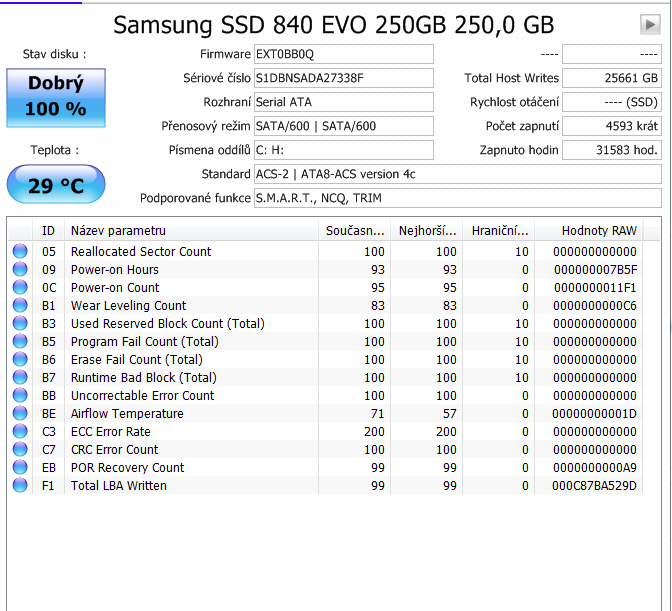 Nepoužívám, ale podle crystal disk info i HD tune by měl být ok