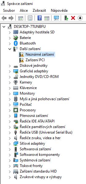 S tímto ovladačem se nainstaloval i ovladač pro "Neznámé zařízení".