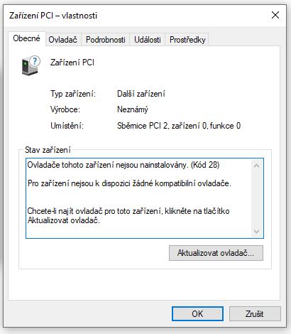 Ovladač pro zařízení pro "Zařízení PCI" jsem si vygooglil podle hardware ID -