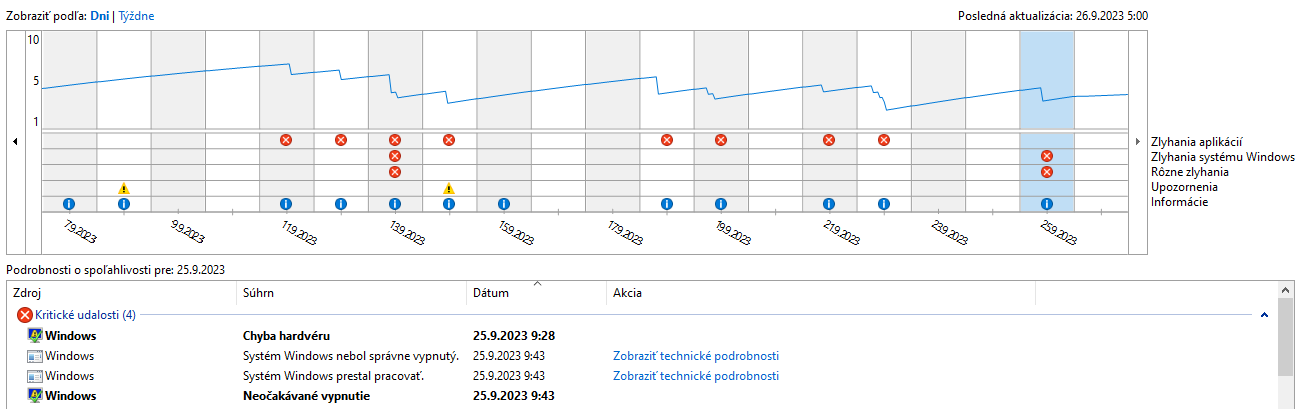 Co v tom Event Vieweru - je neco videt pod Systemem? Neco konkretniho - proces, aplikace, ovladac...