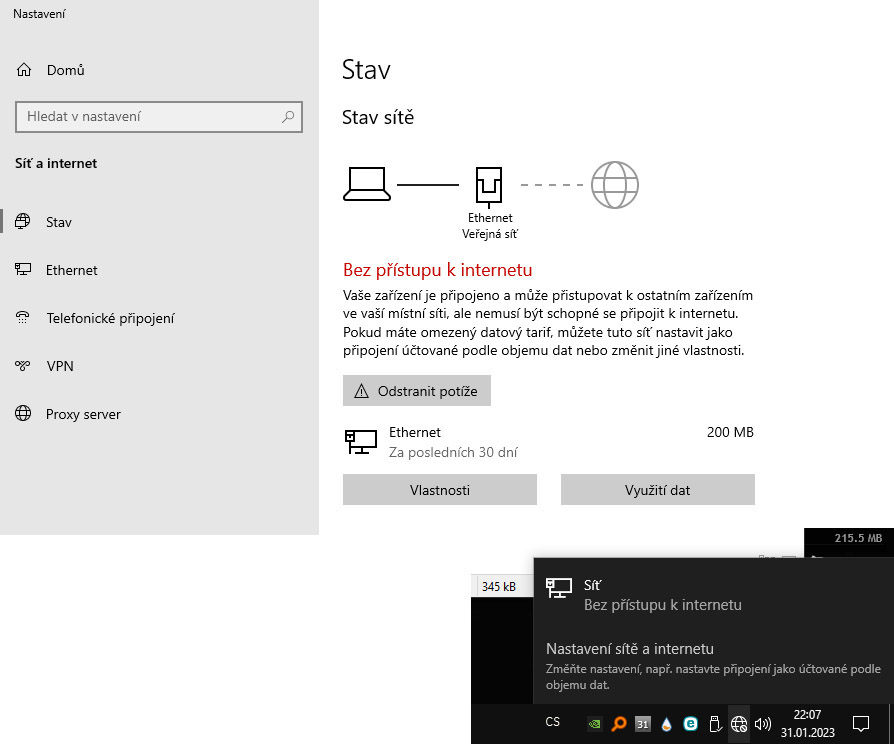 Re: Připojení k internetu nezobrazuje správně Win10 Vyřešeno