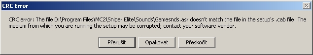 memphisto píše:píše to, že máš špatnou instalaci a nebo poškrábané médium.nechápu to ale pokud je to dneska koupená originálka
