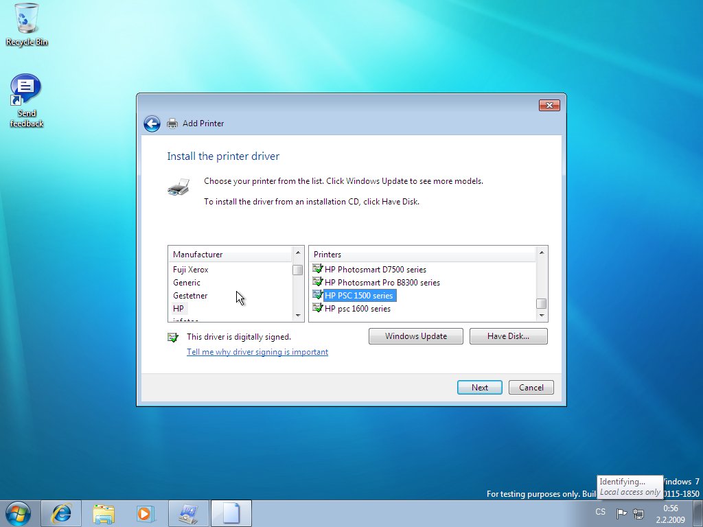 HP PSC 1500 series najdeš rovnou v seznamu. Tady je kdyžtak screen.