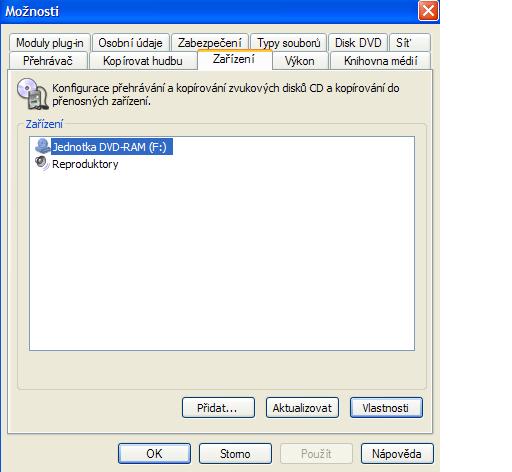 Nástroje - Možnosti - Zařízení přidat - a tam se musí zobrazit ta jednotka DVD (CD). A Vista ani XP s tím asi nemá mnoho společného je to jen otázka WMP - tedy na systému zřejmě nezáleží.