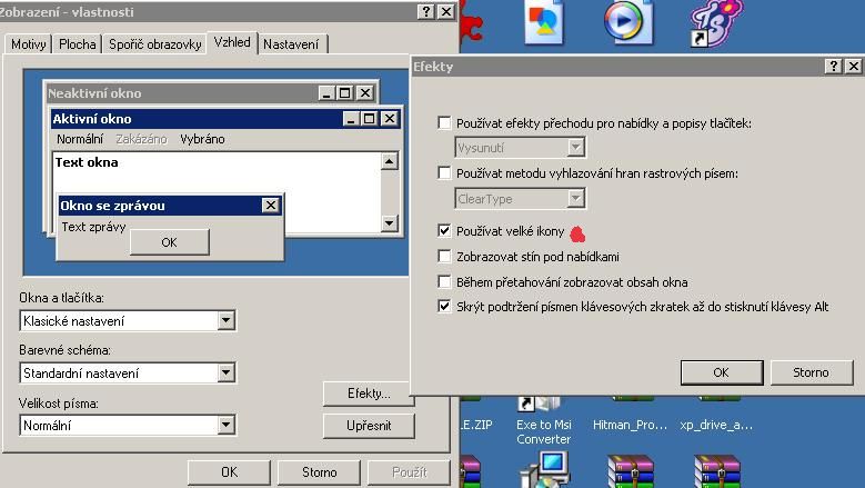 Měl jsem klasiké malé "Xpéčkové" ikony a jak jsem přeinstaloval Win, tak mám klasické vistáčkě velké ikony.. Kdysi jsem si to změnil, alwe ted už nevím jak..díky