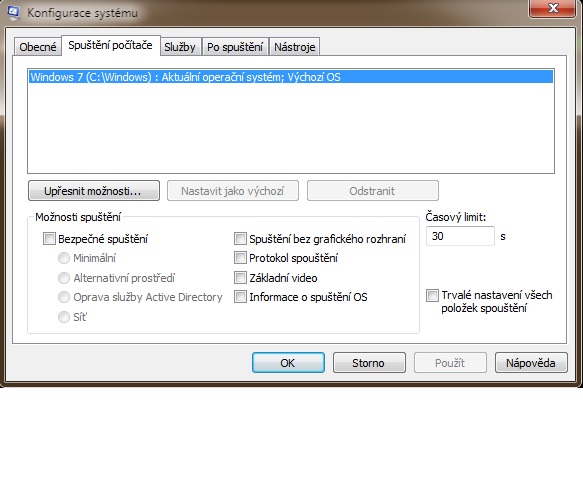 Na kravině trvám. Ukazuješ tu Nástroj pro konfiguraci systému z W7. Kdyby jsi četl dotaz, zjistil bys, že mu tam zbyly pouze Win XP, Visty odstanil. Win XP bootují trochu jinak než Visty a W7. To co mu dává na výběr OS je pozůstatek z Vist (bootmanager).