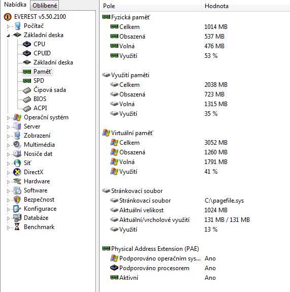 BIOS vidí paměť v pořádku (RAM 1GB)