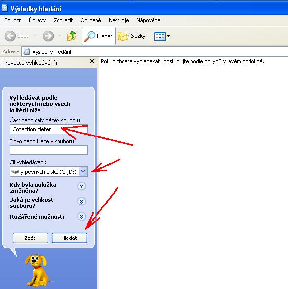 Start - Hledat - Všechny soubory a složky a tam napiš Conection Meter a klikni na Hledat. Dám ti obrázek z XP snad je to stejné.