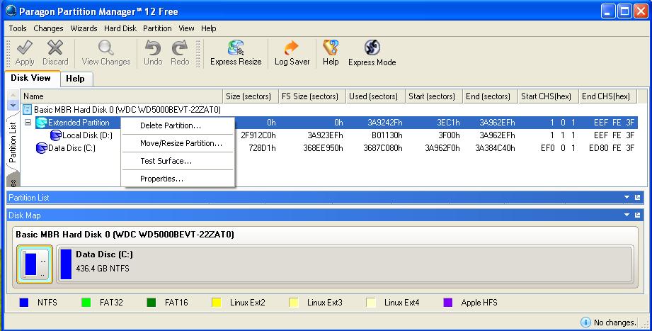 Stáhl jsem si tedy ten Partition Manager a moc se v tom nevyznám, nerad bych smazal skoro 450GB dat.