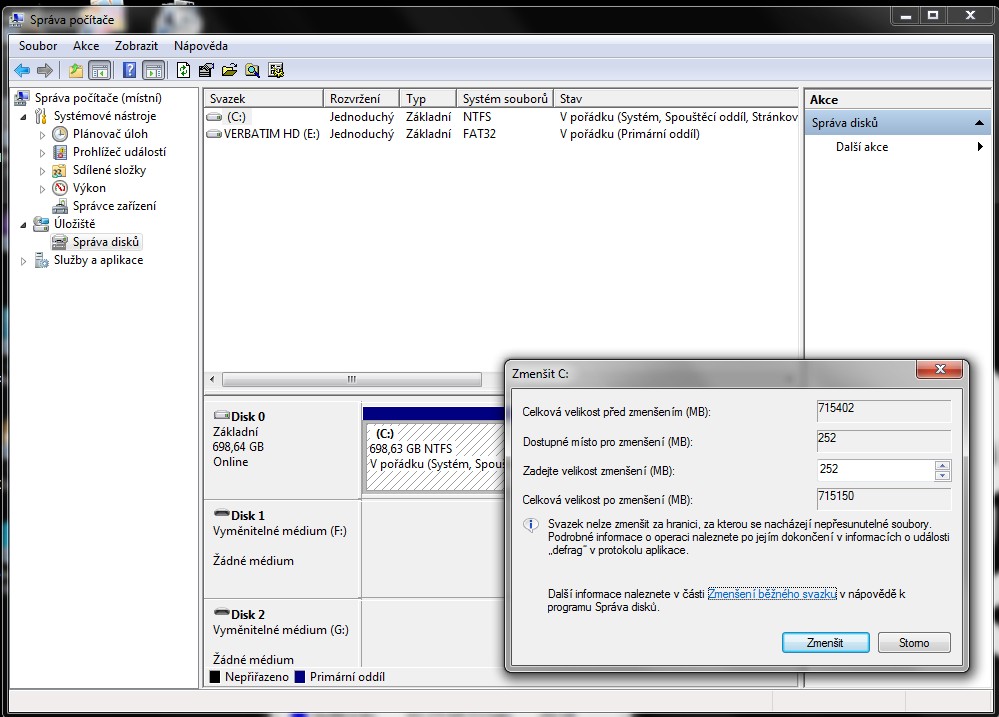 Re: Rozdělení pevného disku - nedostatek dostupného místa