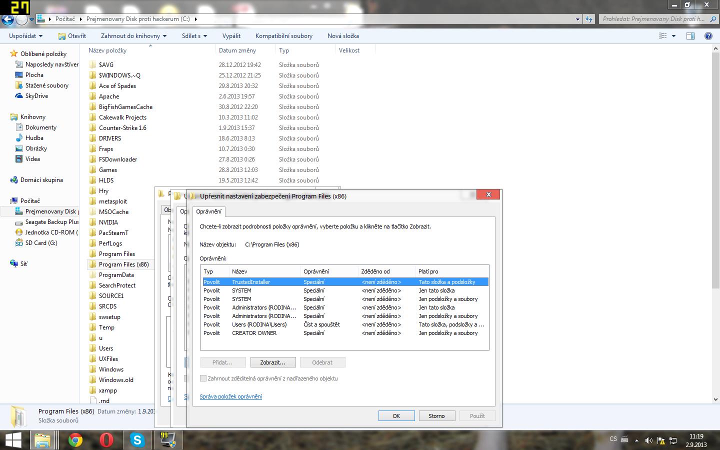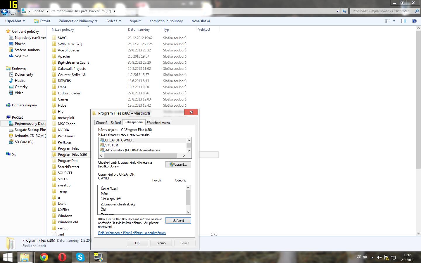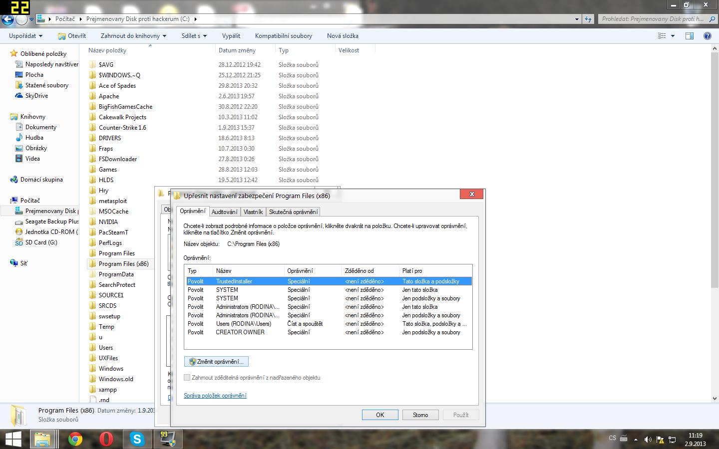 Cau nemuzu zmnenit opravneni na slozku Program files x86