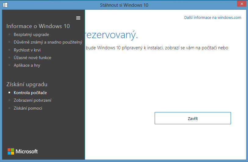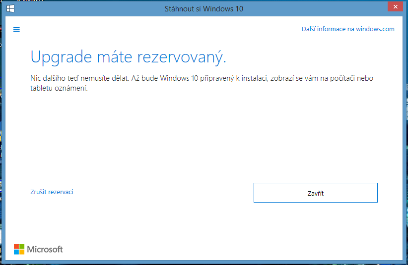. A tam je rezervovaná Windows 10 ! . Aniž by jste na to klikli . ani já jsem o tom nevěděla .Re: Jak se ubránit vlezlé aktualizaci na Win 10
