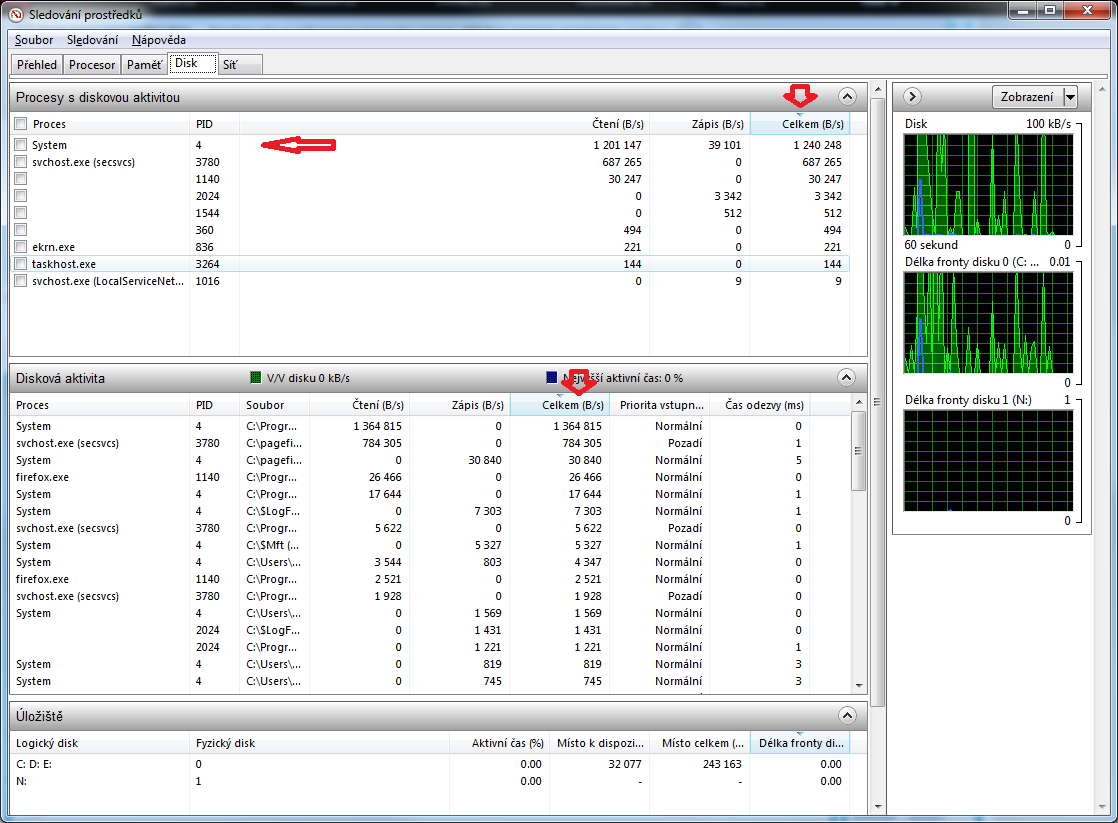 Dobře zkusím, díky. Jinak, co tedy platí? Disková aktivita nebo procesy s diskovou aktivitou?