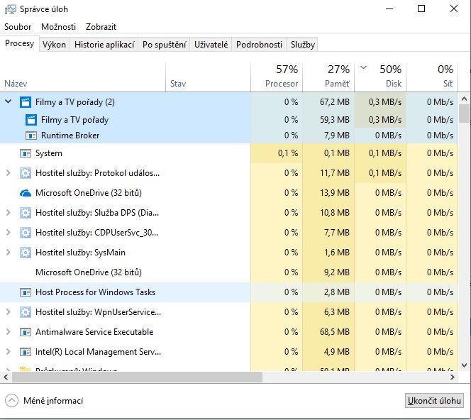#15:47 - Po probuzení z režimu spánku funguje dobře (disk zatížen na cca 80%), ale po přepnutí na druhý účet, kde jsem zapnul video (fungovalo plynule) a zpět na první účet (bez odhlášení) se video začalo sekat a disk zatížen na 100%